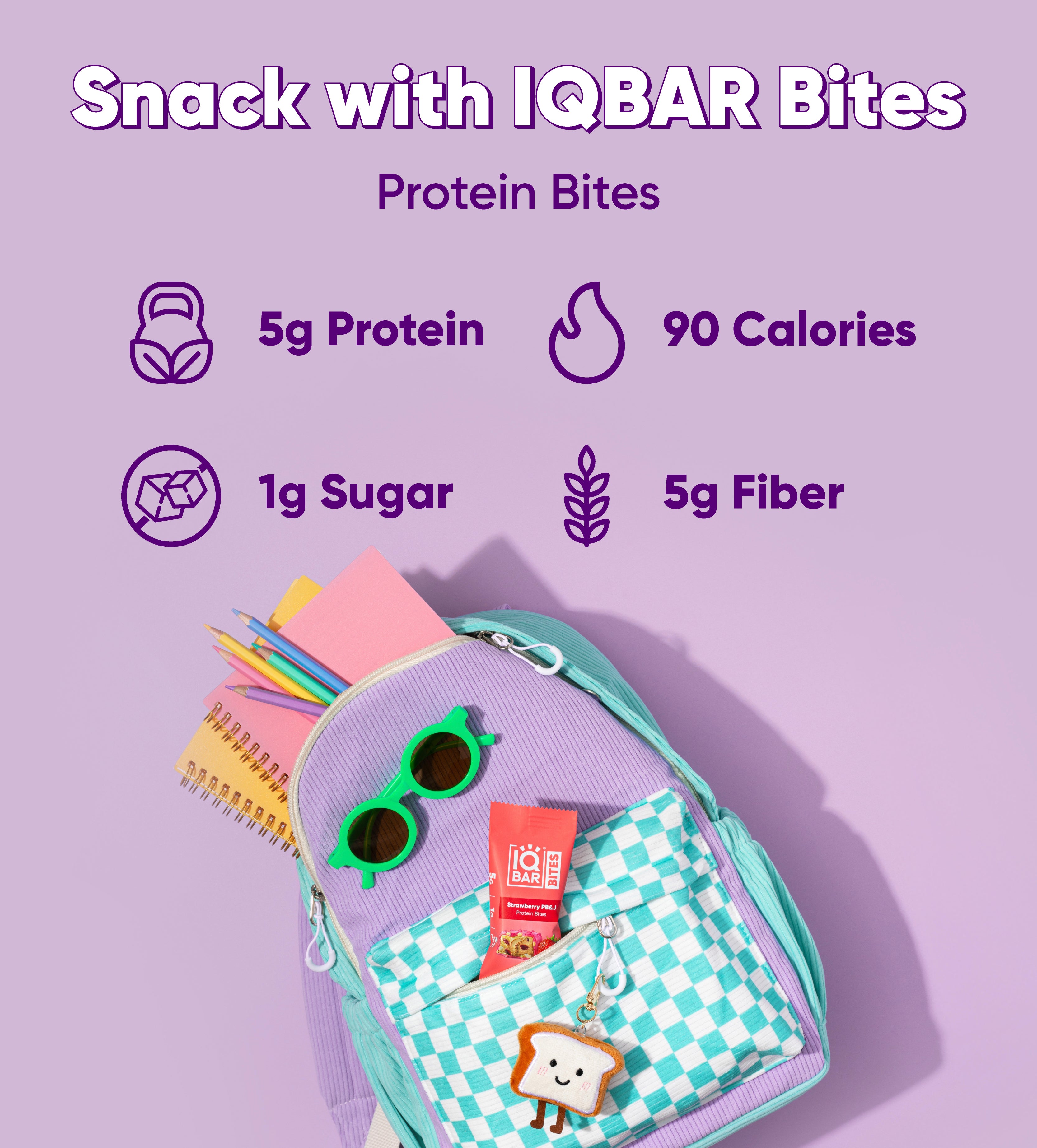 Our IQBAR PB&J Bites bring the nostalgic taste of a classic PB&J to your snack game in both Strawberry and Blueberry flavors. With 5g of plant protein, 5g of fiber, and just 1g of sugar, these perfectly portioned bites keep you fueled and satisfied all day long.